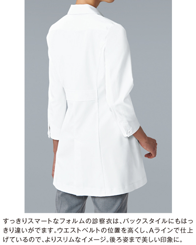 シルエットにこだわり、美しさが際立つレディス診察衣