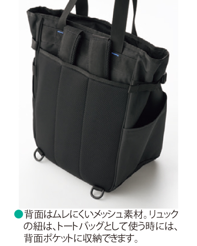 A4ファイルをタテにもヨコにもすっぽり収納でき、リュックにもなる人気の2wayバッグが、さらに進化!PC・タブレット対応のポケットや、ペンや小物をスッキリ整理できるステーショナリーポケット付 【サイズ】 フリー(幅27cm、高さ37cm、マチ19cm) 【素材】 ポリエステル100% 【容量】 19L 【重量】 約750g