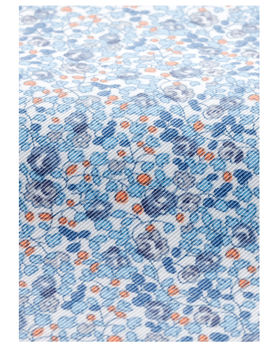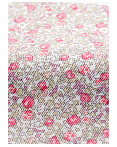 繊細で優しいリバティプリントを全面に使い、白いトリミングをデザインアクセントにしたエプロンです。