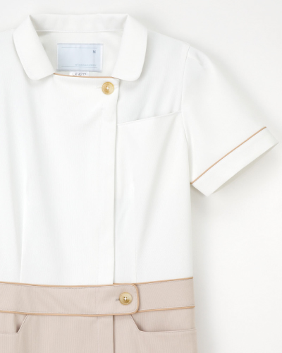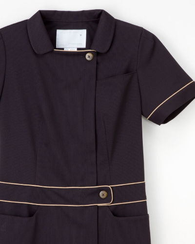 シンプルでしっかりした衿に、エレガントな配色の女性らしいシルエット。素材:ポリエステル90% キュプラ10% 【制菌加工・制電・吸水・防汚れ・透け防止】 後ろ見頃はボックスプリーツ仕様で機能性も抜群。様々なシーンで着用可能なデザイン。受付や事務スタッフにも。