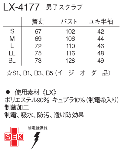 | 製品名: | LX-4177 男子スクラブ ナガイレーベン(nagaileben) |
