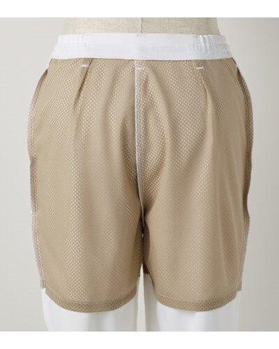 素材はライトストレッチトリコットを使用しており、肌が当たる裏側が点接触の生地なので、汗をかいてもベタつかず涼感をキープ。