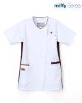 素材:ポリエステル100%(制電糸入り)制菌加工、制電、吸水、防汚効果 落ち着いた配色のmiffy刺繍と織ネームがポイントのユニセックススクラブ。軽い着心地の織物素材を使用し、フロントファスナー開きで着脱しやすく、ペンなどを付けることができる3連ループ、スマホポケット、ストラップ止めも搭載しており機能性も高い商品です。