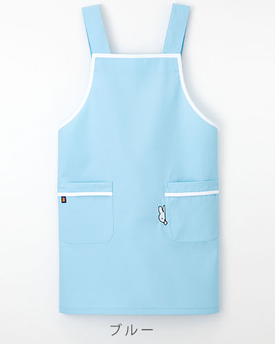 ポケットの端から覗き込んだmiffyが可愛らしいエプロン。白の配色パイピングとmiffyの白さが統一感を出し、新鮮な雰囲気です。ポケット口に挟み込んだブルーの織ネームもポイントになっています。素材/ポリエステル85% 綿15% 撥水加工