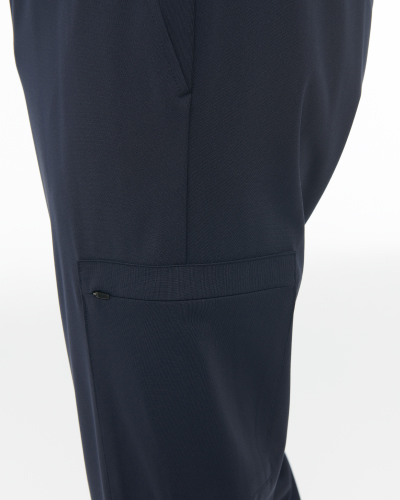 ◆サイドのデザインポケットやメッシュ使いでスポーティなテイスト ◆ポリエステル90%、キュプラ10%(制電糸入り)