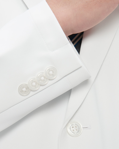 ◆審美性と機能性を併せ持つ革新的なドクタージャケット◆メディカルホワイトクロス(ポリエステル90%、キュプラ10%/制電糸入り)