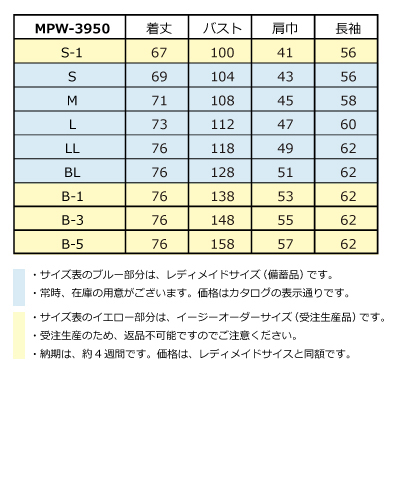 イージーオーダーサイズは数量関わらず約4~5週間の日数を頂いております。