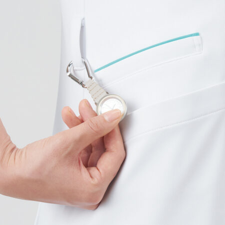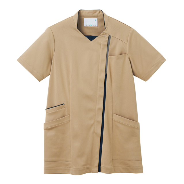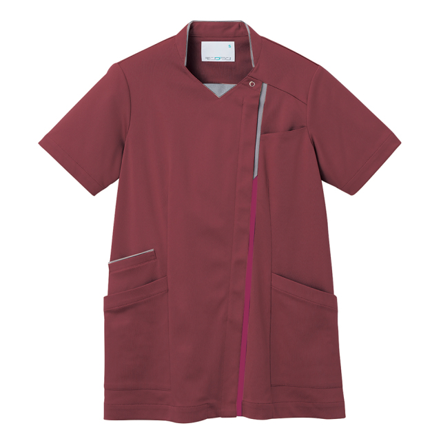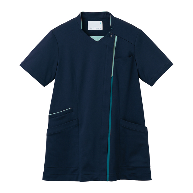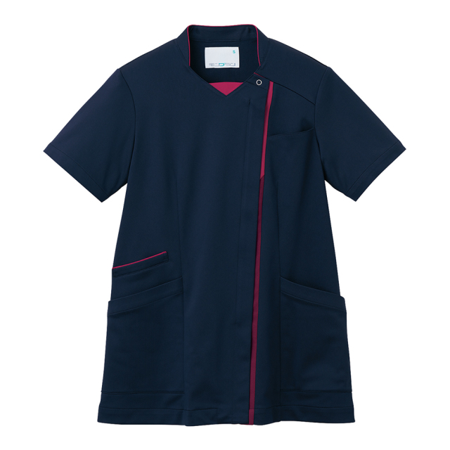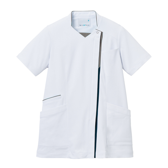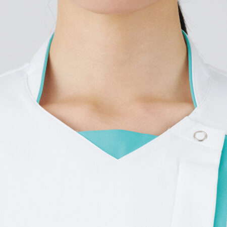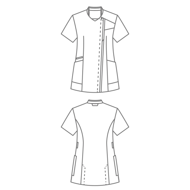 縦ライン配色でスタイリッシュな印象のジップアップスクラブ。 素材/本体:ハイパーストレッチトリコット(ポリエステル100%) 配色:カチオントリコット・ソフトラチネ(ポリエステル100%) 機能:制菌/透け防止(白のみ)/吸汗/制電/防汚/ストレッチ