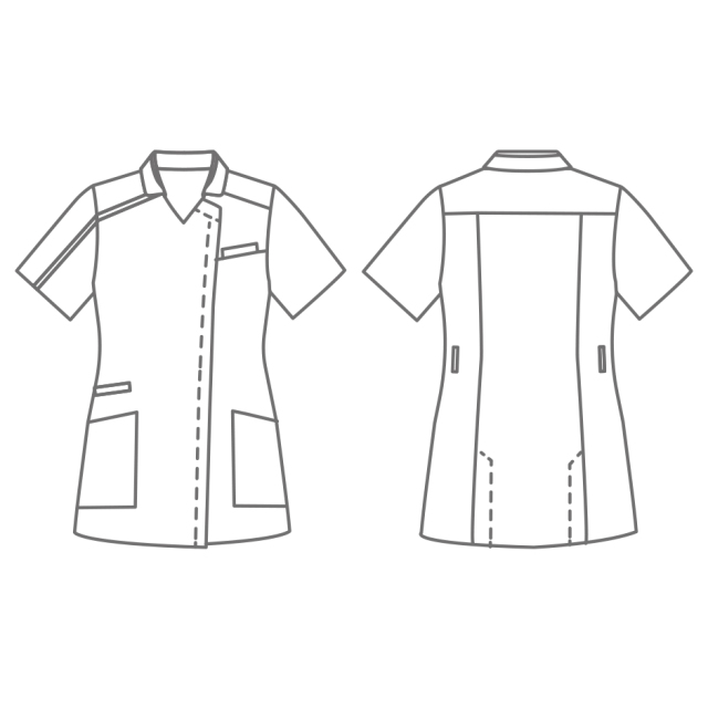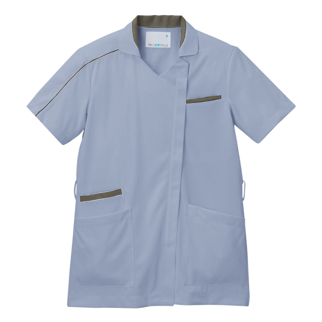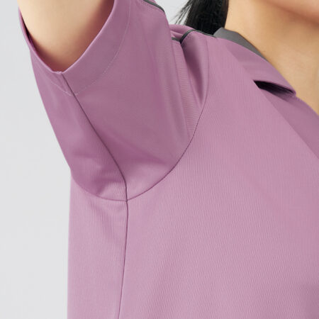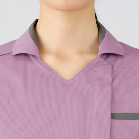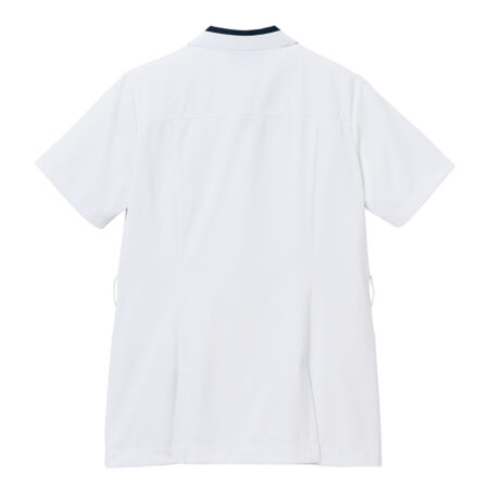 襟付きできちんと感のある男女兼用ジップアップ。表情を引き締める配色効果も。 素材/本体:ライトストレッチトリコット(ポリエステル100%) 配色:カチオントリコット・ソフトラチネ(ポリエステル100%) 機能:制菌/透け防止(白のみ)/吸汗/制電/防汚/ストレッチ