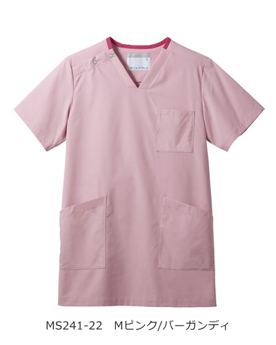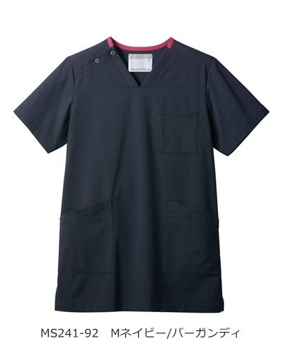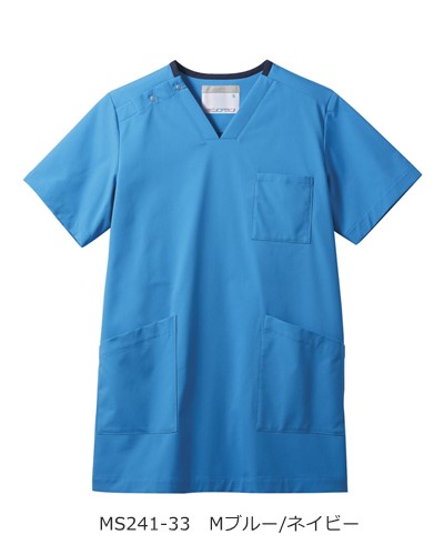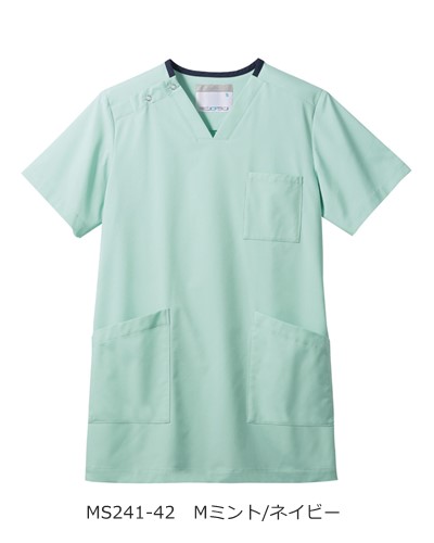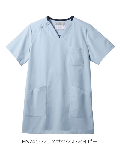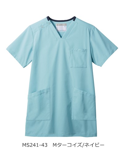 生地機能は制菌・制電・吸汗機能を備えています。着脱が簡単な肩口スナップテープ仕様。後ろ襟ぐり部分の配色切り替えもデザインアクセント。