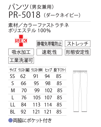 SEK、制電、ストレッチ、吸水、速乾、形態安定、工業洗濯可