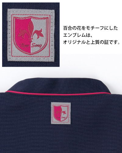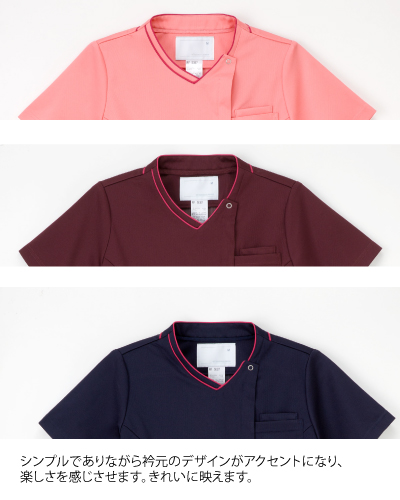 ◆シンプルでありながら衿元のデザインが楽しさを感じさせます。ネックレスのようなアクセント効果で首周りが映えます。◆ポリエステル95% ナイロン5% (制電糸入り) 【制菌・制電・吸水・防汚効果】