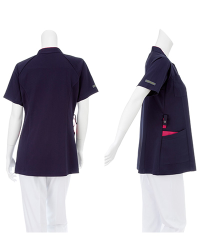 RF5182 女子スクラブ◆New Song(ニューソング)×PRO-FUNCTION(プロファンクション)◆動きやすさと涼しさの女性用スクラブです。縦に入った切り替え配色ラインが、視覚効果によりすっきりとスリムに見せてくれます。