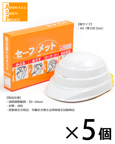 ワンタッチ式防災用ヘルメット/5個セット。(国家検定合格品)