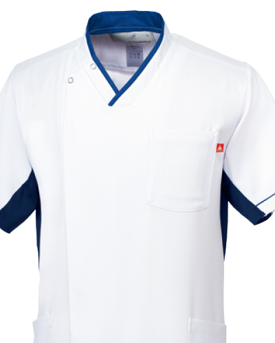le coq sportif(ルコックスポルティフ) MEDICAL WEAR(メディカルウェア) WHITE BASE style◆UQM1533 45 93 ユニセックスVネックスクラブ◆コックスポルティフらしさのある スポーティーなスクラブ◆工業洗濯可、吸汗速乾、ストレッチ、防透、帯電防止、制菌