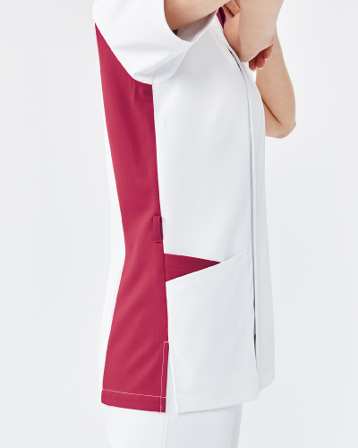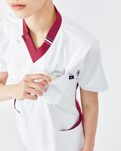 病院で採用になり配布分では到底間に合わないので買い足しました。ルコックはスレンダーな体型向きで、レディースMだとキツいのでユニセのMにしましたが、チャックが左側なので女性には着用時の違和感あるかも。