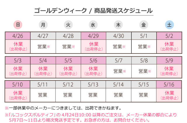 GW休業のお知らせ 日頃よりナースウェアドットコムをご利用頂き誠にありがとうございます。 ナースウエアドットコムは誠に勝手ながら、 2026年4月29日(水)、5月2日(土)~5月6日(水)を休業いたします。休業期間中もご注文は承りますが、お問い合わせの回答や欠品のご連絡は、順次対応といたします。 ネーム刺繍、ズボン裾上げ等の加工につきましても、休業中は停止いたします。 該当期間は除きまして、仕上がりまで2週間前後お時間をいただきます。 ご不便をおかけしますが、ご理解いただきますようお願い致します。 お知らせ